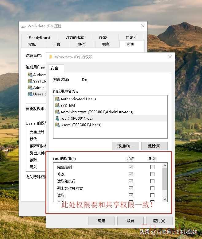 3. (重要!)设置文件访问权限操作: 文件夹属性 > 安全选项卡 > 编辑 > 添加用户/组权限匹配: 勾选修改+写入(读写权限) 或 读取(只读)