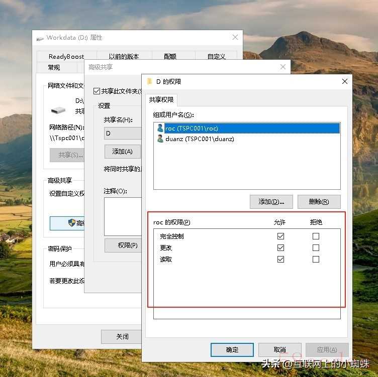 4. "添加用户/组并设置权限":在“权限”窗口中,点击“添加”按钮,输入要共享给的用户或组的名称,然后点击“检查