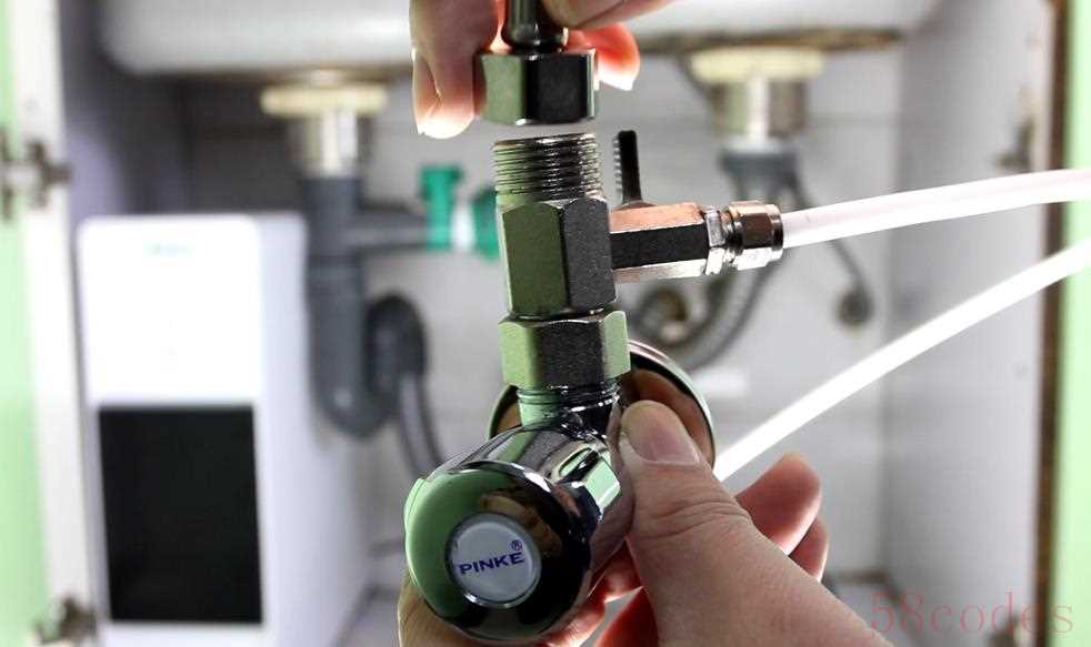 然后关闭总进水阀和角阀,将水龙头内的压力卸掉,旋下水龙头或橱柜内的冷水连接软管,进水三通外螺纹处缠上生料带,连接到自来水管路上。
