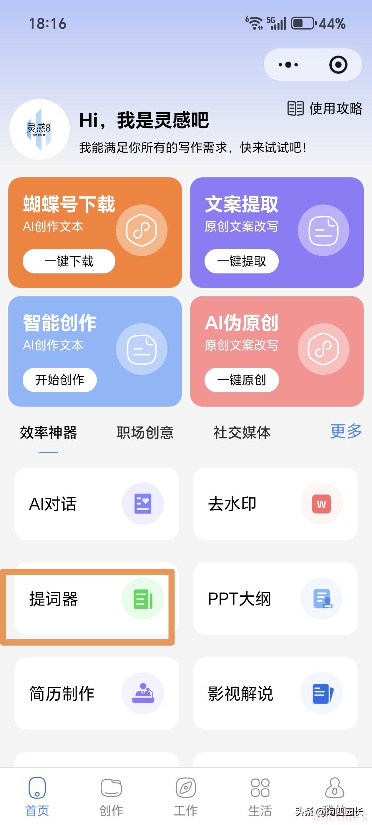 第四步:点击蓝色的#灵感吧,选择第一个选项