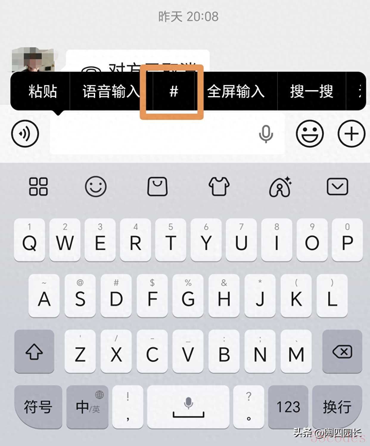 第二步:在输入框长按,找到#号键(找不到的话可以从符号里输入)