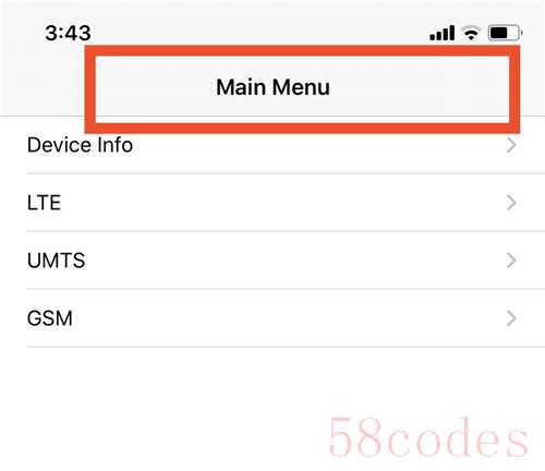 (2)这时就可以看到你手机基带的品牌了。如果顶部显示的是"Field Test",这就代表你的iPhone是高通基带,如果显示的"Main Menu",那么你的iPhone就是英特尔基带。高通基带的信号搜索能力要比较英特尔基本要强和稳定些,所以信号要好些。