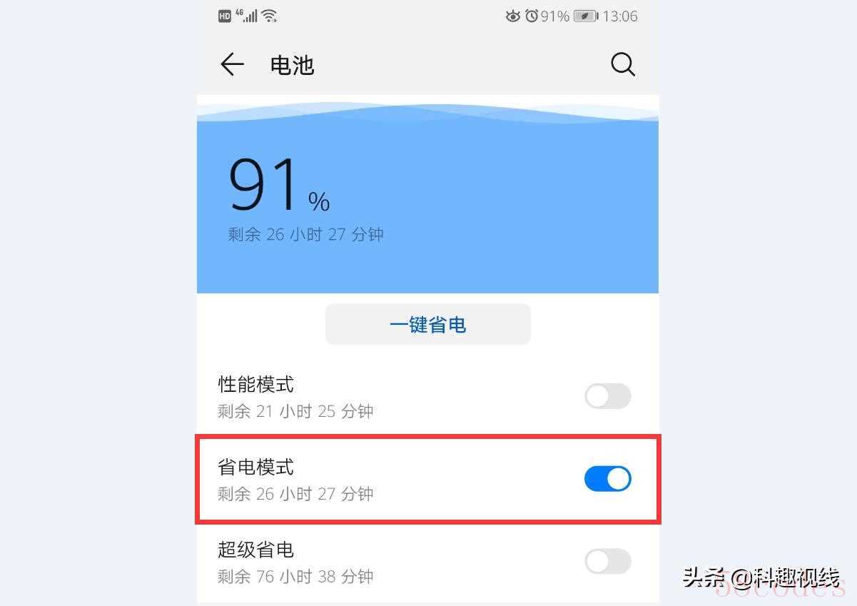 点击进入设置 →电池→点击关闭“省电模式”即可。