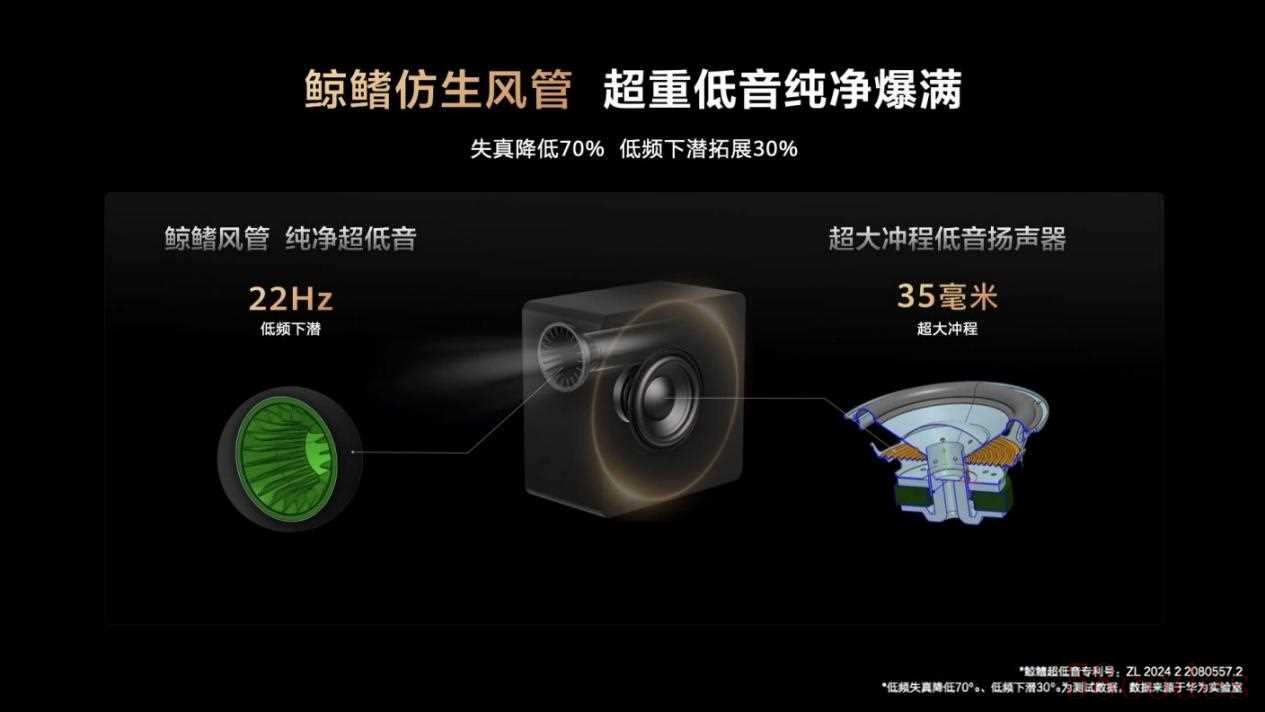 如果说「7.1.4星穹声场」构建了沉浸听的“空间骨架”,那么「鲸鳍超重低音」则为这份沉浸感注入了“灵魂级”的低频力量。过往低音箱常面临两大痛点:一是气流噪声明显,低音下潜时易产生“轰响”;二是低频松散无力,难以还原爆炸、鼓点等场景的冲击力。