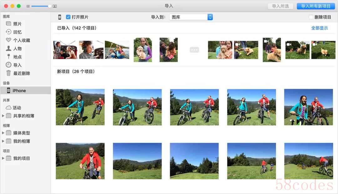您可以使用“照片”应用将照片从 iPhone导入到 Mac,而无需使用 iCloud 照片图库。这些步骤同样适用于从数码相机和 SD 卡导入图像。