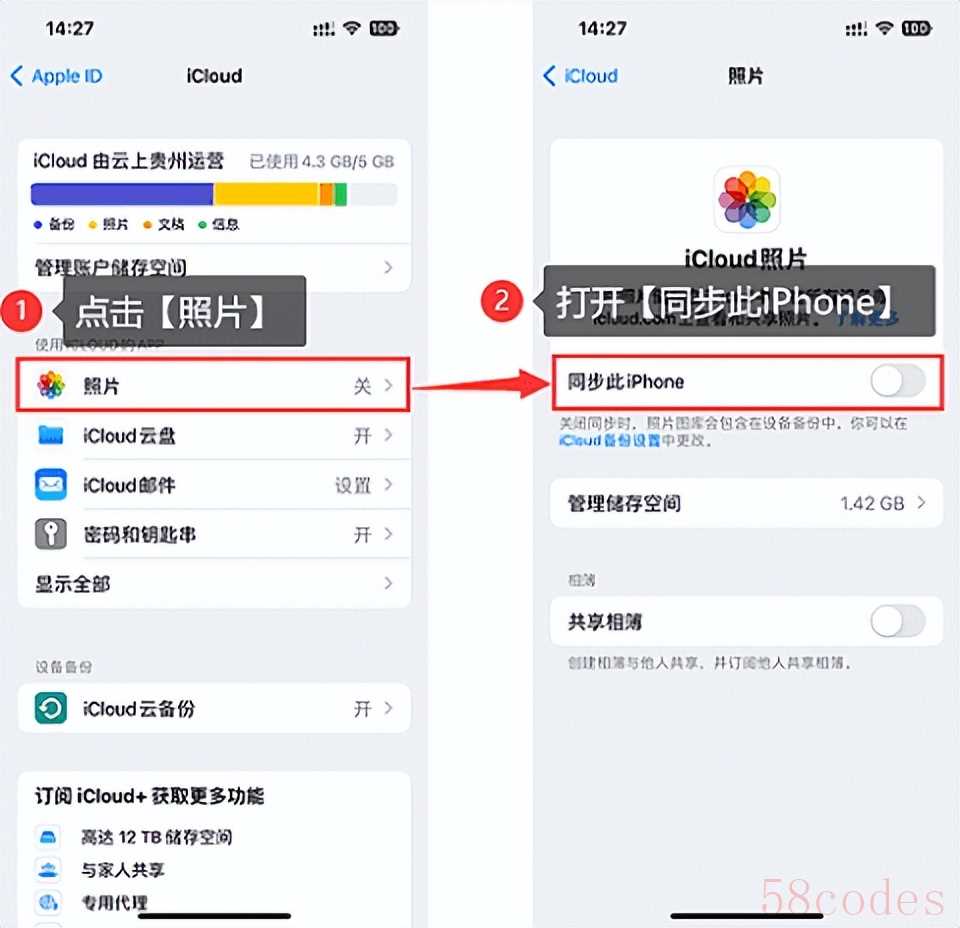 iCloud是苹果公司提供的一项云存储服务,它允许用户将数据存储在云端,以便在需要时从任何Apple设备进行访问和下载。所以我们可以通过iCloud将手机照片导出,该方法比较适用于有另一台苹果设备的朋友。快速导出苹果手机照片的方法如下: