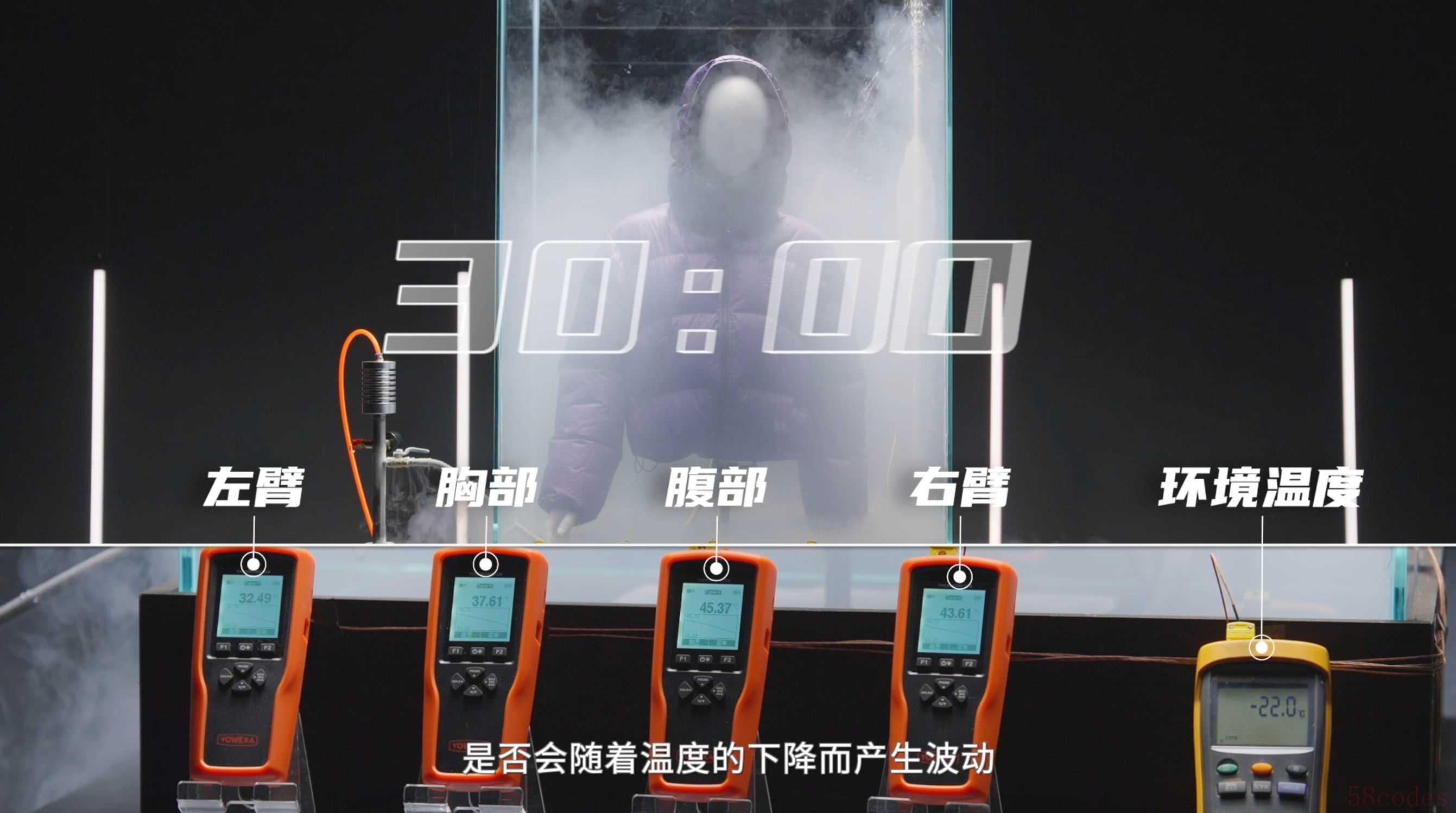 为此,极氪实验室让假人模特穿着FILA飞羽羽绒服,放入零下二十摄氏度的密闭环境。胸口、手臂、腹部等关键部位贴附比热传感器,以追踪体表温度。三十分钟后,各测温点几乎无波动。