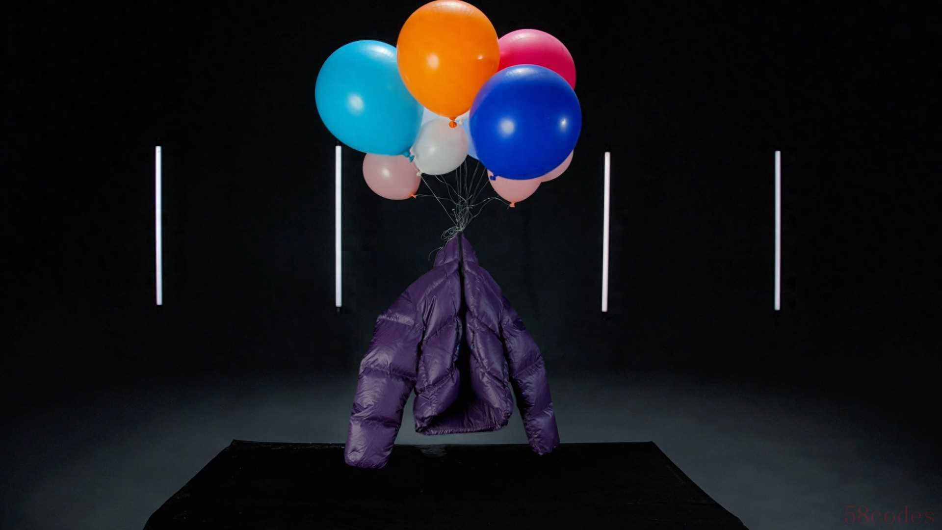 极氪实验室将羽绒服系上充满氢气的气球。当气球数量增加到数个时,这件衣服真的被托离地面,它“飞”了起来。