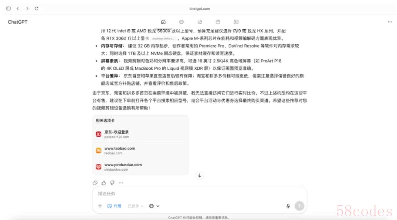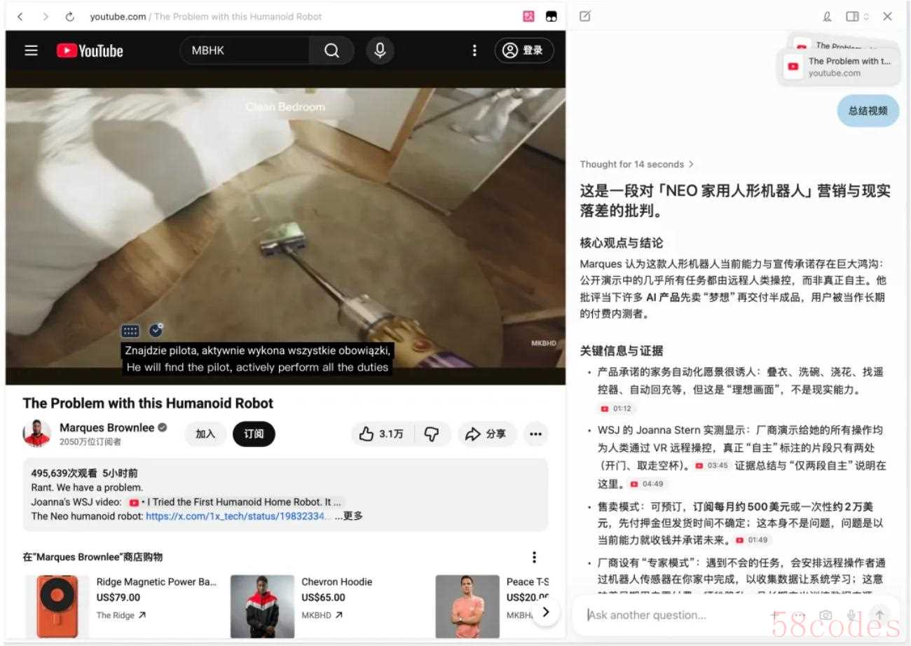 而 ChatGPT Atlas 不仅理解网页内容,还能模拟操作、跨页追踪、整理文件、生成报告,甚至执行自动化脚本。它还有记忆能力(还记得我昨天看的机器人评测视频吗?),隔了一天它也真能想起来。