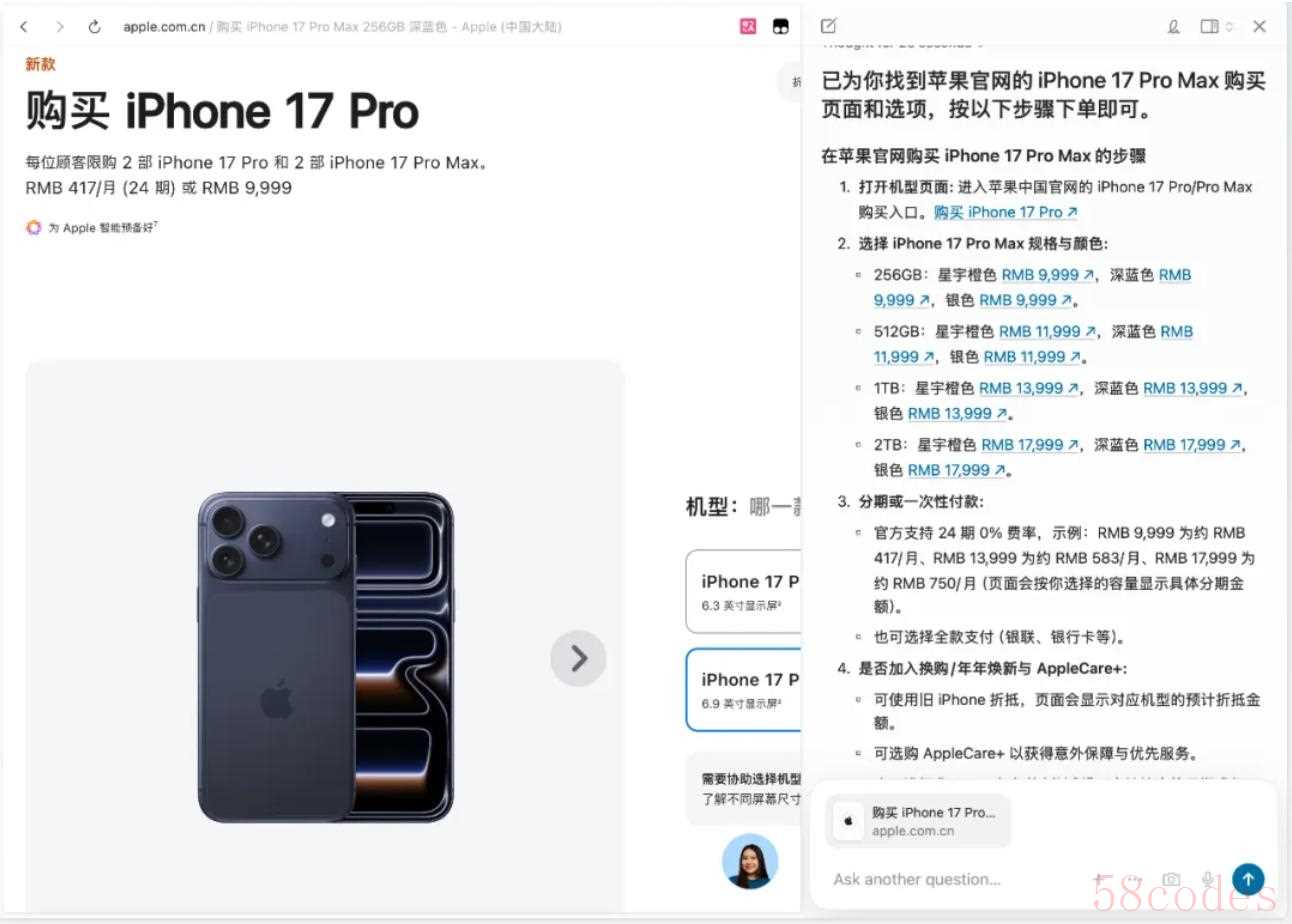 我们让它们「在苹果官网购买一台 iPhone 17 Pro Max」。