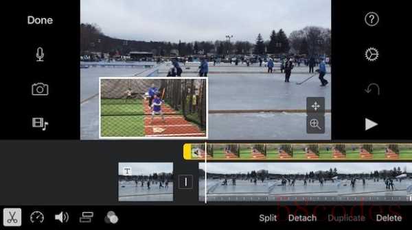 用户新建好一个iOS版iMovie项目并在时间轴中导入视频素材后,可以用滤镜调整每个片段的画面,也可以在画中画中组合素材、分画面整理。