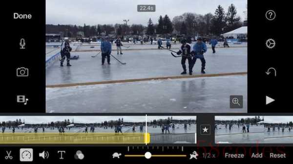 你可以加速或减速播放某一视频片段。选中一段视频,点击剪刀按钮旁边的加速按钮。这时,你将会看到一个滑动条。当你调整速度时,时间轴上会出现一个黄色控制杆,显示你的速度调整所持续的时间,你还可以拖拽这个黄色控制杆更改速度调整的起止位置。