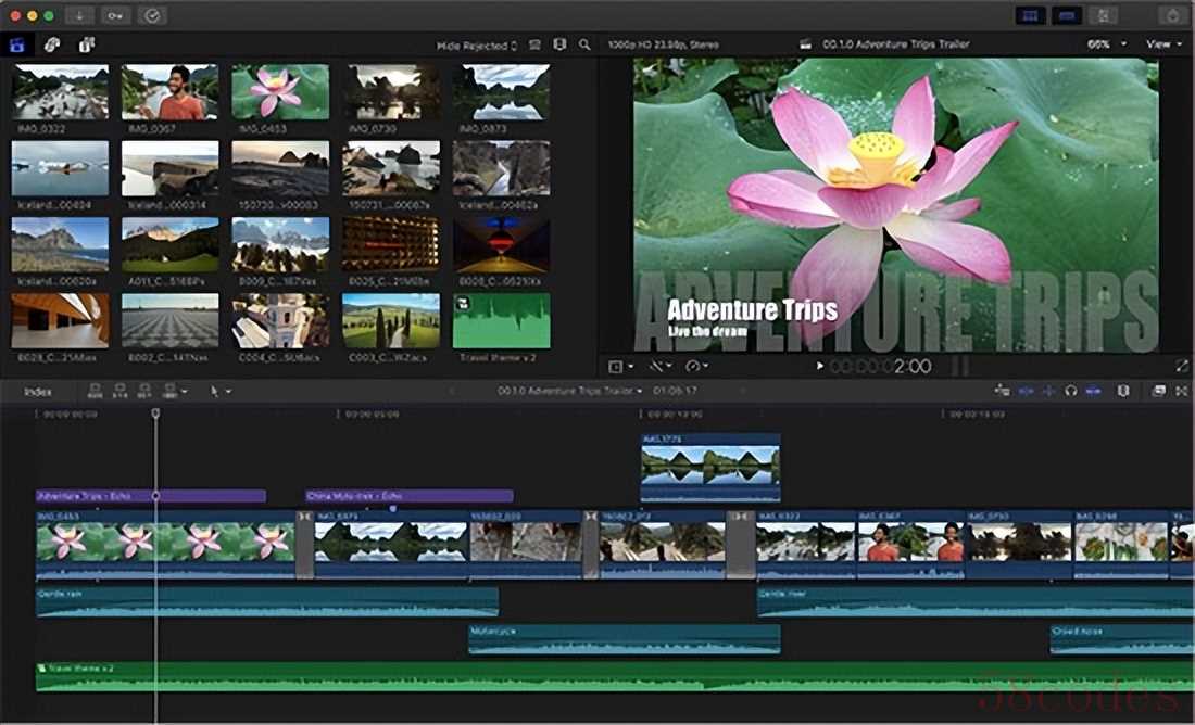 苹果旗下专业剪辑软件,仅支持 Mac 设备,操作流畅,渲染速度快,支持多轨道编辑和高规格视频处理。剪辑逻辑独特,采用 “磁性时间轴”,删除片段后剩余内容会自动吸附拼接,无需手动调整间隙。支持精准到帧的剪辑,同时集成基础调色、特效功能,适合 Mac 用户中的专业创作者,但价格较高,且对设备配置有一定要求(建议M1 Pro 及以上芯片)。