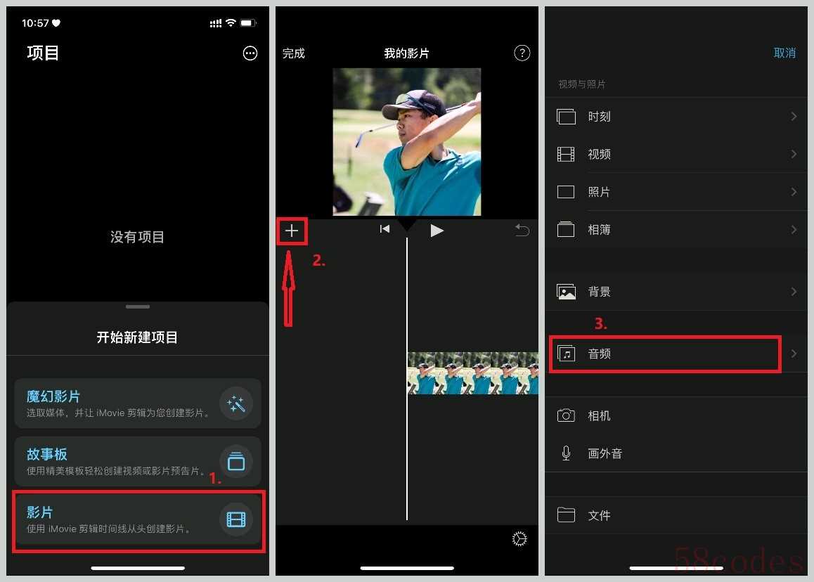 这款剪辑工具可在手机、电脑上打开,不过目前仅支持苹果用户使用。我们打开之后点击【影片】选择导入需要添加配乐的视频。点击视频左上角的【+】,选择【音频】。