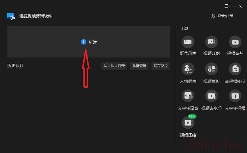 这是一款电脑上比较专业的视频剪辑软件,不过它使用起来却比较简单,我们打开之后可以点击【新建】将需要添加配乐的视频导入并拖动到时间轴。