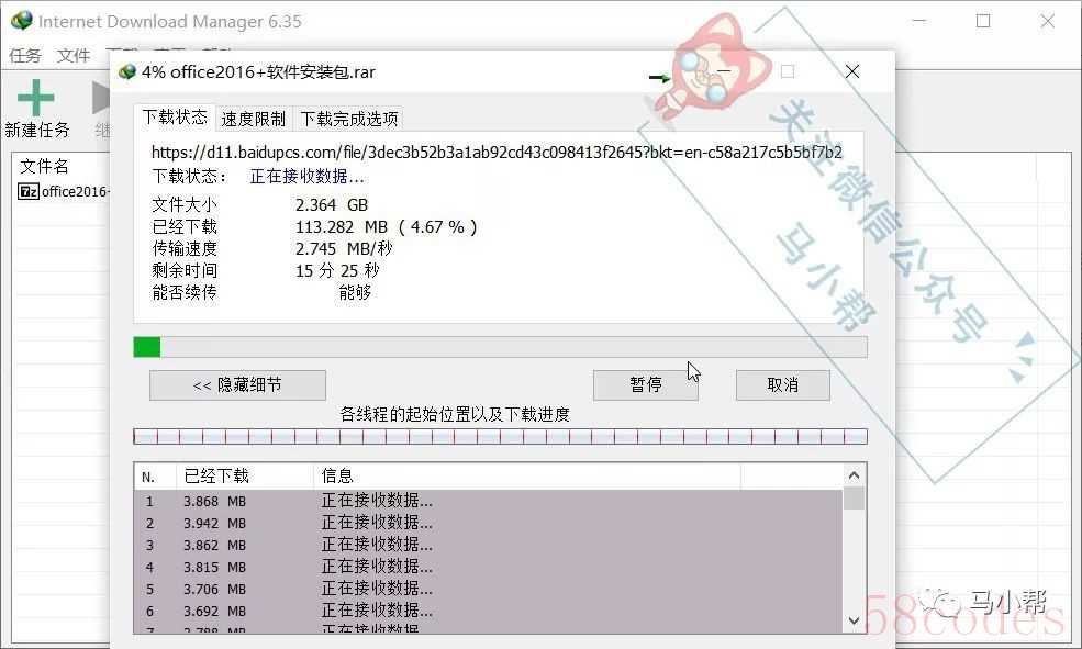 然后复制普通链接,打开下载工具就可以直接下载了。这里用IDM多线程下载工具给大家做演示。新建任务-输入复制的链接-点击确定就开始下载了!