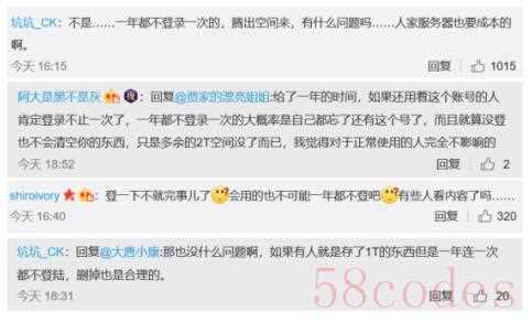 此通告一出,也引起了不少网友的热议,很多网友认为,此次调整完全不影响使用体验,即使调整到100G的储存空间,对于一般用户也完全够用,除了日常的资料存储,电影也能存个几十部。有网友评论百度网盘此番操作很厚道,“正常用户至少每周登录一次,政策无影响,一年都不登录的号,只怕主人自己都未必记得。”也有网友调侃道:“空间不用请留给有需要的人,清空下僵尸用户没毛病,毕竟服务器也需要成本。”
