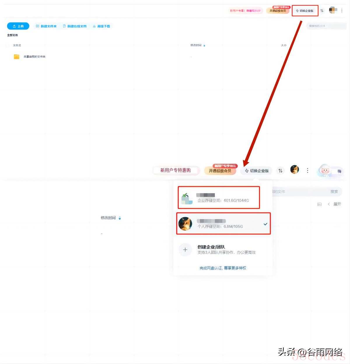 百度网盘企业版和个人版切换及退出教程: