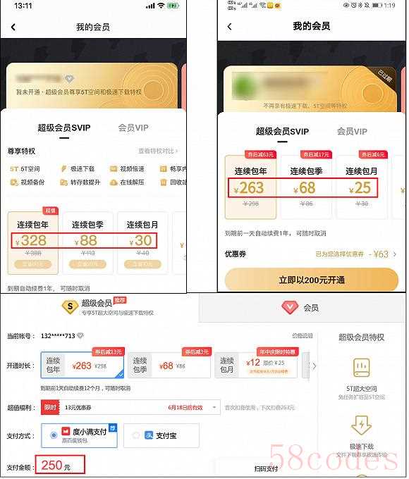 界面新闻记者曾经分别在苹果手机、安卓手机、电脑网页三种终端对比了百度网盘会员价格。其中,iOS端的百度网盘超级会员定价328元;在安卓手机上价格为263元,叠加年中特惠优惠券后,支付价为200元;而在网页端,使用了同样的优惠券后,价格为250元。三种平台,最高价与最低价之间相差了128元。