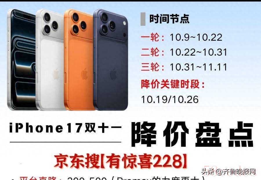 根据目前的信息和往年规律,苹果 iPhone 17 系列在双11期间的最低价策略通常是分阶段进行的。以下是一些关键点: