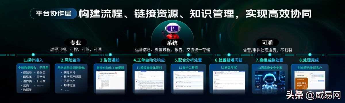 360安全云产研中心副总裁 马博凯云端一站式运营协作平台,高效链接安全智能体与L1-L3级安全专家,创新协同作战模式,实现98%告警安全智能体自动处置,360顶级安全专家7*24小时无间断运维值守,在云端即可实现威胁处置的全流程闭环,无需购买硬件设备及安全软件,企事业单位只需为安全效果买单。