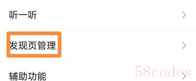 第一个尾巴藏在“发现页管理”里的“附近”。