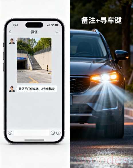 - 随手存备注:拍好后立马发微信给自己,备注 “景区西门停车场,3 号电梯旁”,找车时打开微信就能看,不用翻相册乱找。