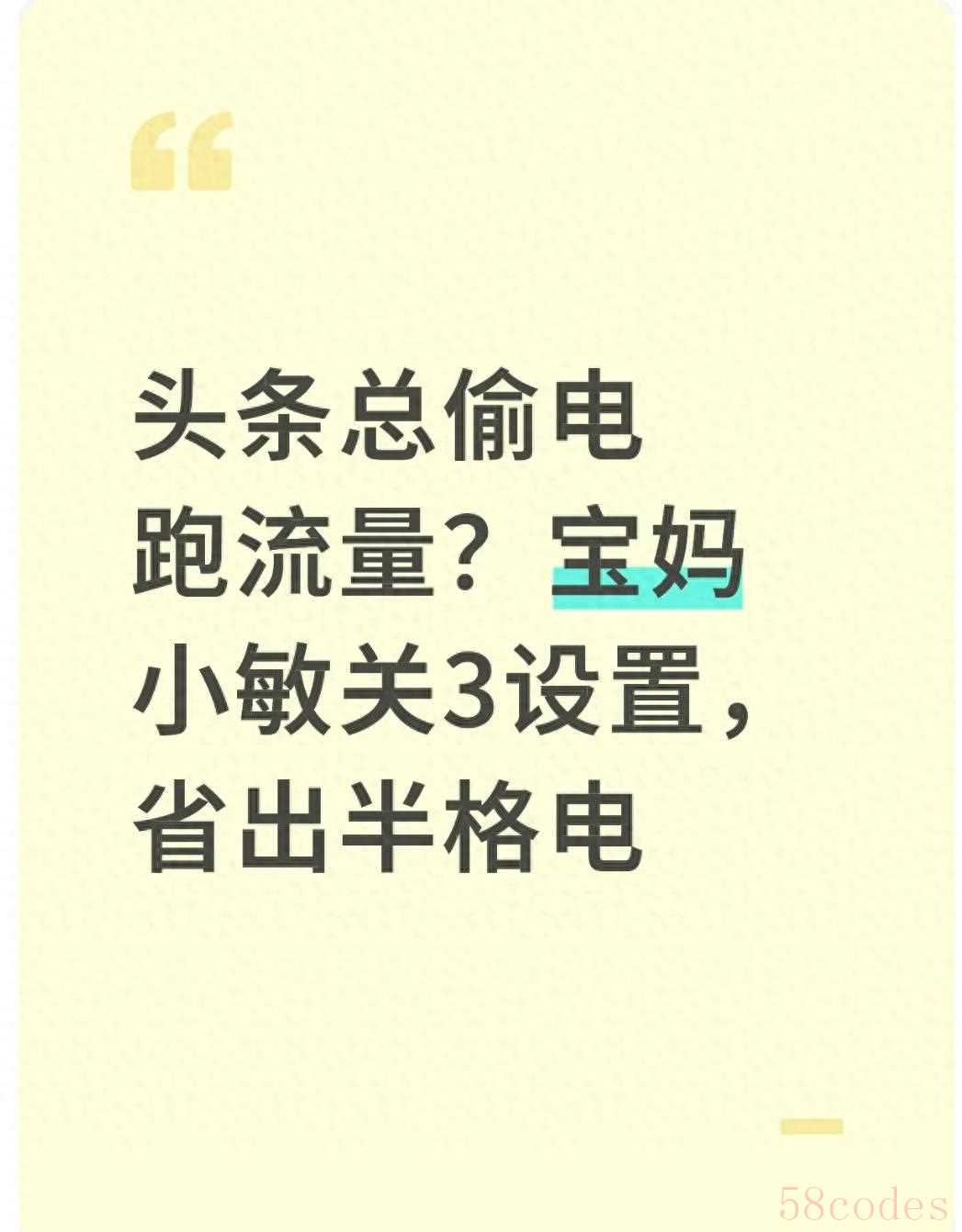 “头条总偷电跑流量?宝妈小敏关3设置,省出半格电” 这句话听起来像是一个网络段子或者夸张的说法,用来形容某些应用(这里以头条为例)可能存在的后台活动较多、耗电较大的问题,以及用户通过关闭一些不必要的设置来节省电量。