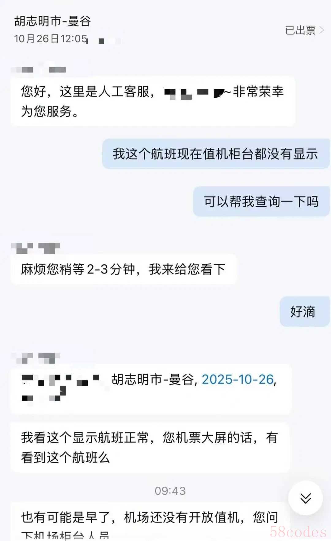然而当天上午她抵达胡志明新山一国际机场后,发现航班信息屏上未显示该航班,值机柜台也未开放。在联系平台客服后,对方表示“可能是到早了,机场还没有开放值机,建议问下机场柜台人员。”