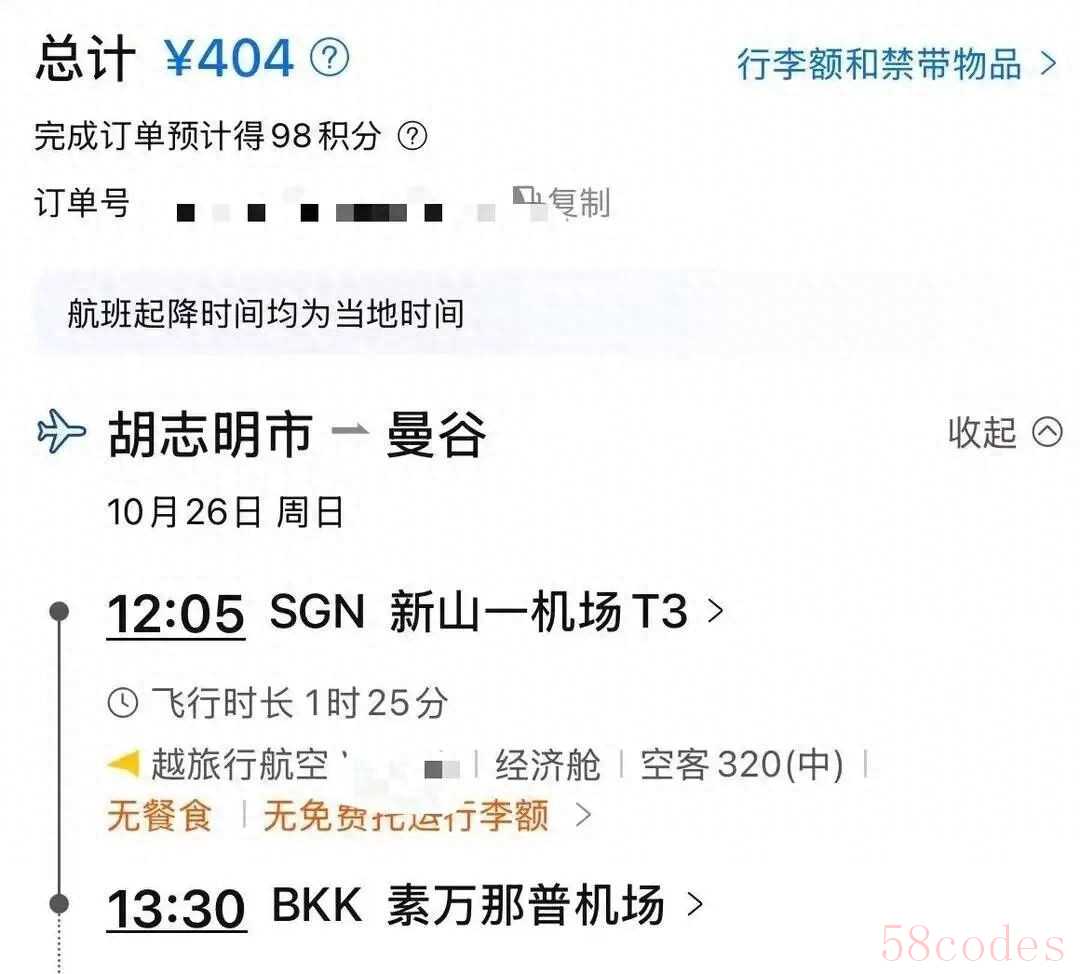 11月5日,王女士告诉封面新闻记者,她于今年10月通过某在线旅游平台购买了10月26日12:05从胡志明市飞往曼谷的机票,行程单显示出发航站楼为T3。