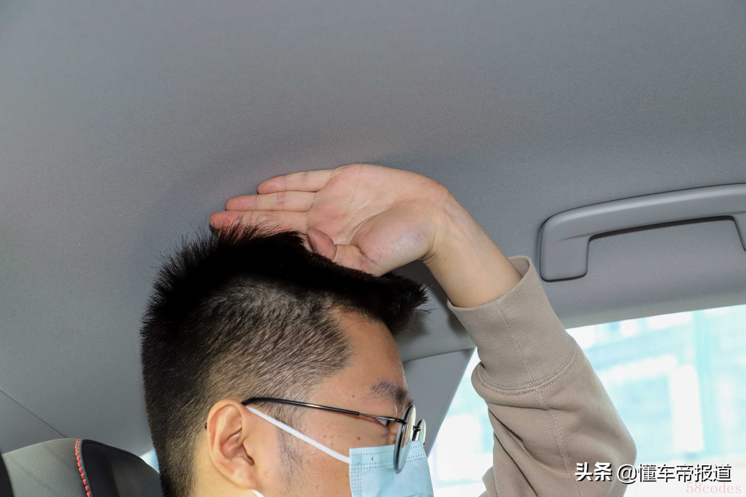 头部空间四指,对于轿跑车来说比较宽裕
