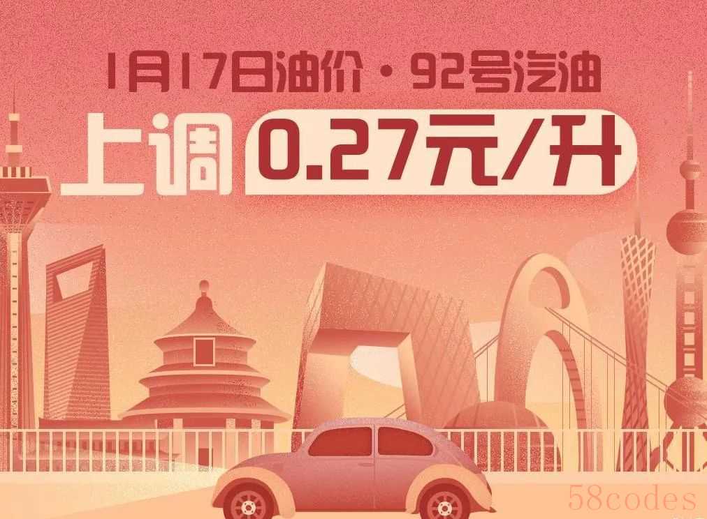 根据国家发改委消息,新一轮成品油调价窗口将于今天(1月17日)24时开启。本次油价调整具体情况如下:汽油每吨上调345元,柴油每吨上调330元。全国平均来看:92号汽油每升上调0.27元;95号汽油每升上调0.29元;0号柴油每升上调0.28元。按一般家用汽车油箱50L容量估测,加满一箱92号汽油,将多花13.5元。