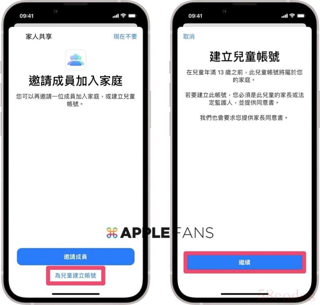 如何在家人共享中设定小孩iPhone 的帐号 ?