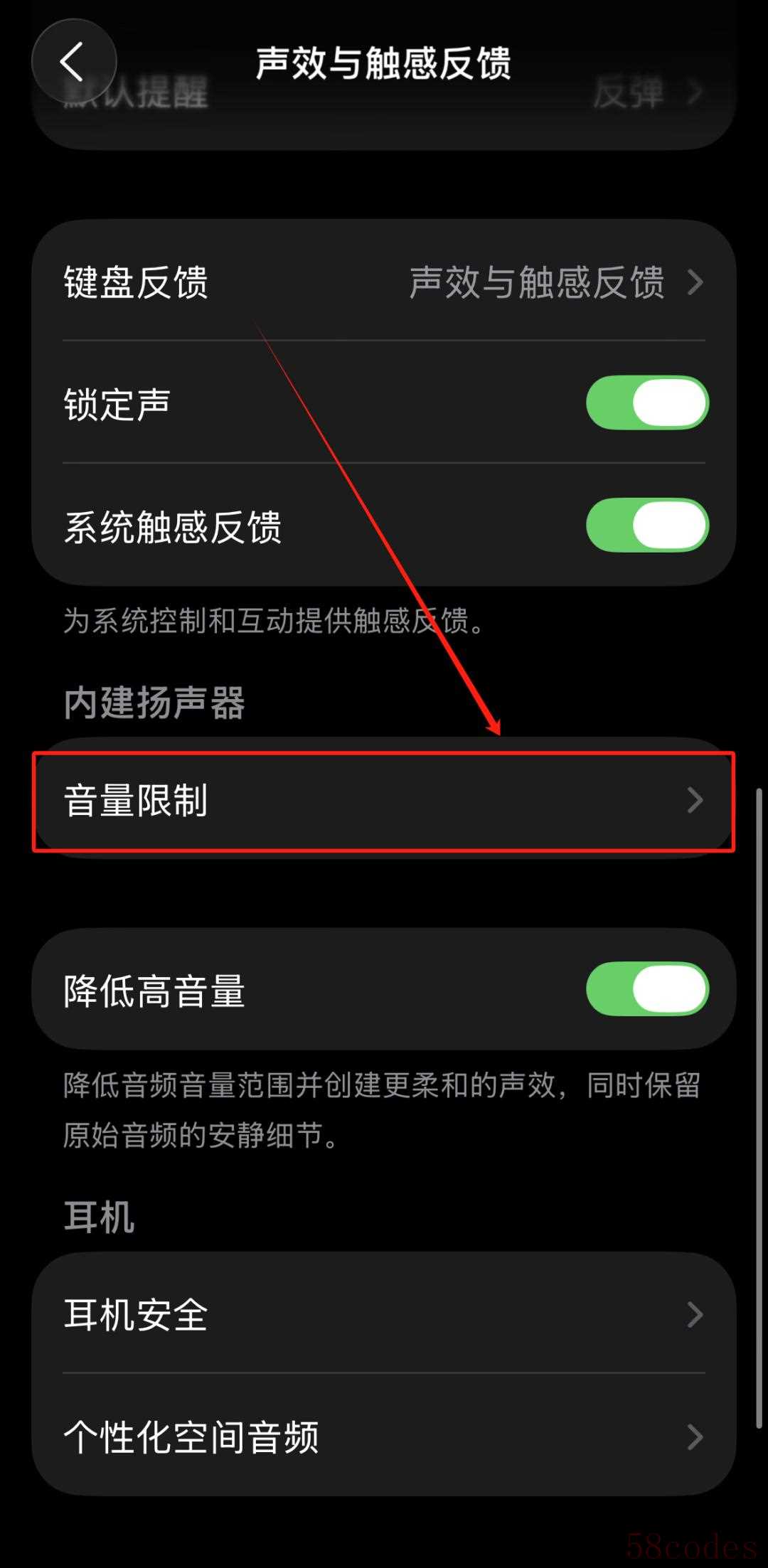 轻点“音量限制”选项。