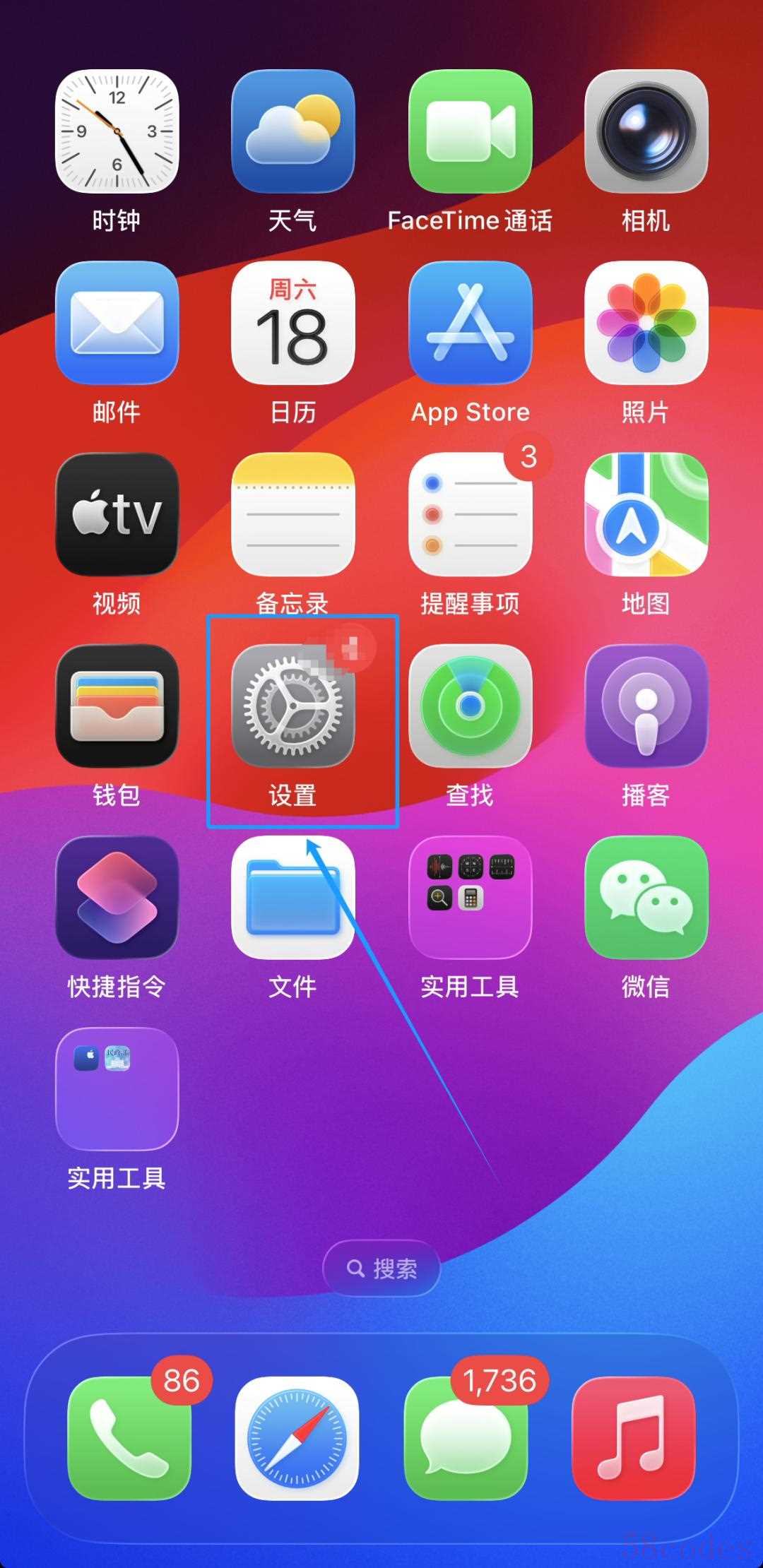 打开苹果手机主界面,点击“设置”选项。