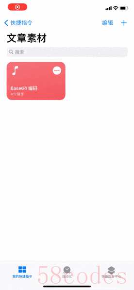 随后,你需要修改刚刚已完成的自动化。删除「获取文件」,并先后添加「文本」和「Base64 编码」。同时,你还要点击「Base64 编码」中的「编码」并将其修改为「解码」。