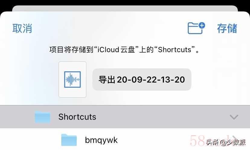 完成音频剪辑后,你需要将音频保存至「文件」app。我建议直接保存至 iCloud Drive 里的「Shortcuts」文件夹(也就是快捷指令 app 对应的文件夹),原因会在后文提及。