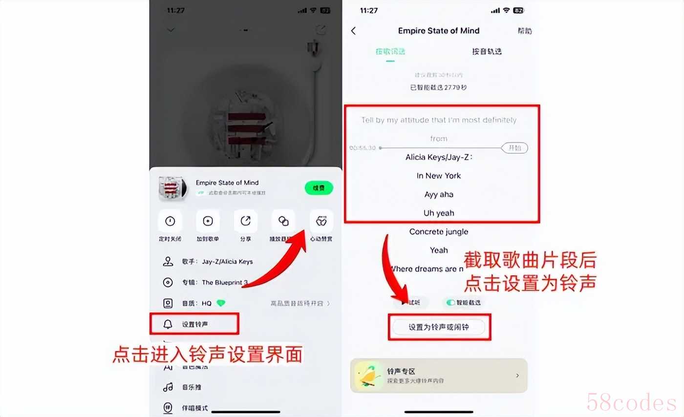 步骤2:在歌曲的详情页面中,选取歌曲片段,点击【设置为铃声】即可。