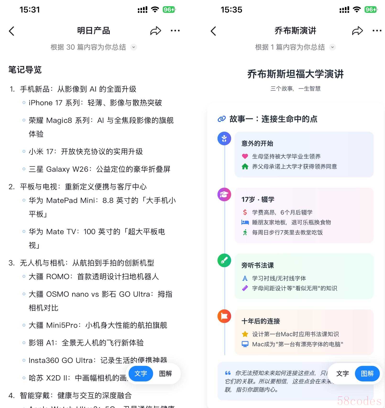 我们从历史浏览里面找到一些视频,添加到笔记,AI 会自动分析我们选择的视频,然后生成一份文字报告和图片报告。