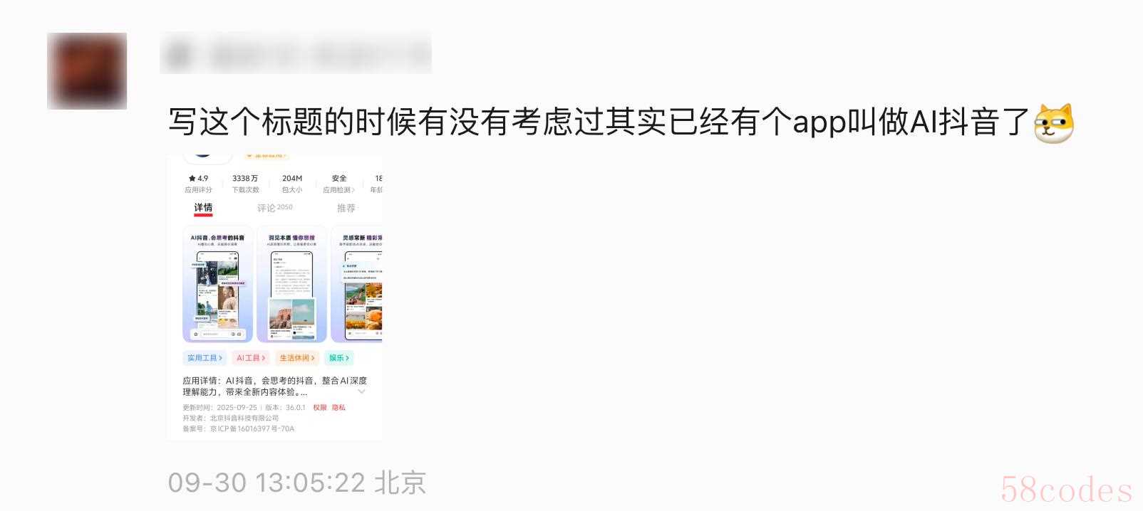 当我们默认就把 Sora 叫做 AI 抖音时,有读者在我们的留言区评论,「其实已经有个 App 叫 AI 抖音了。」