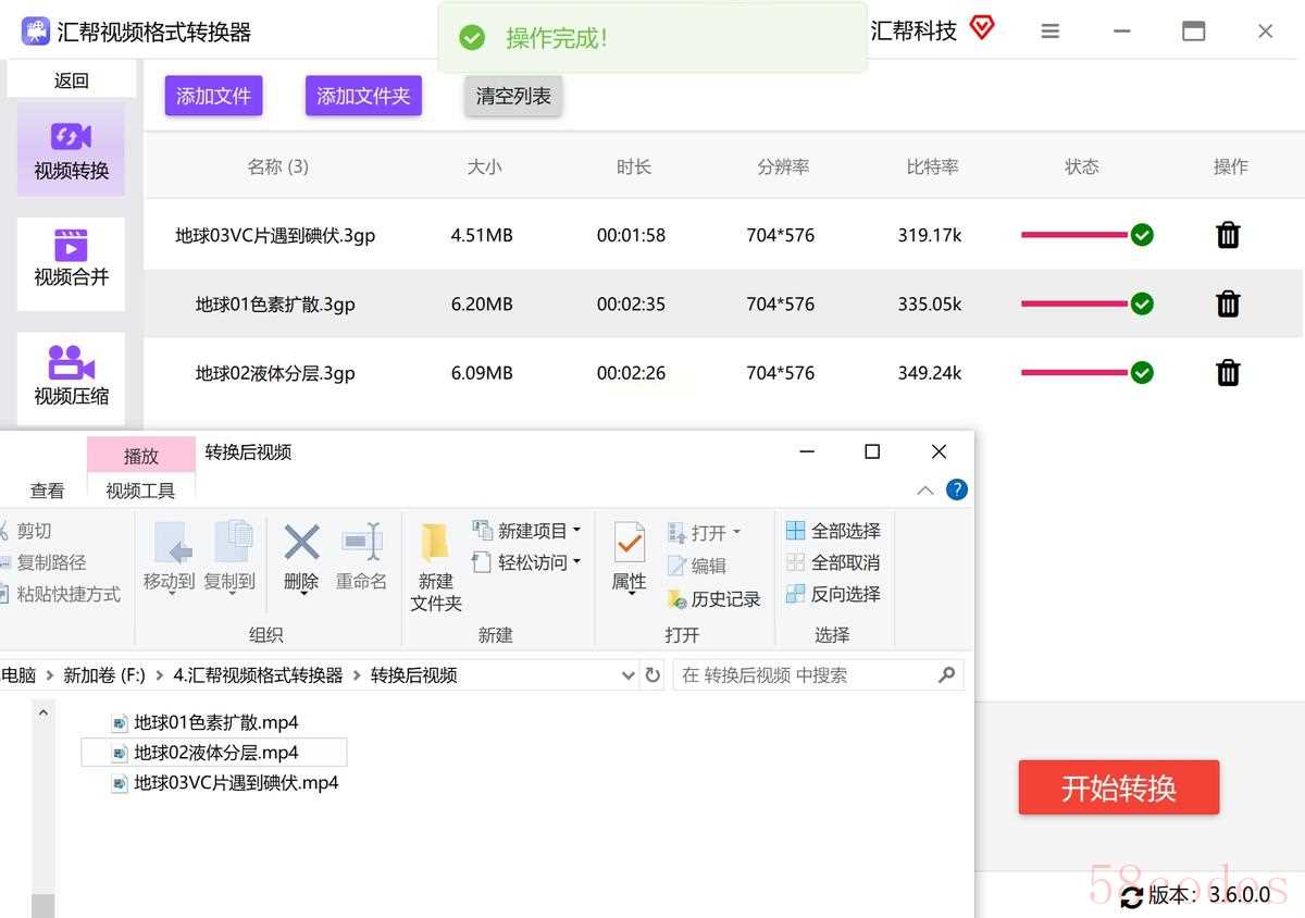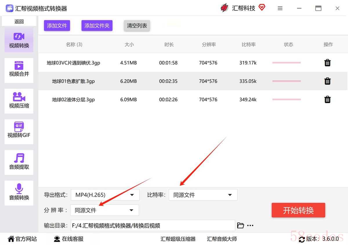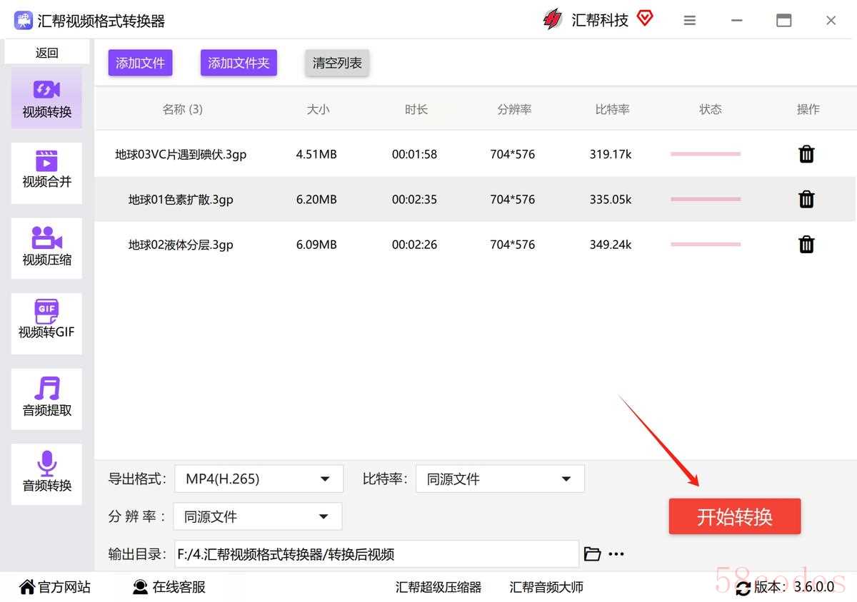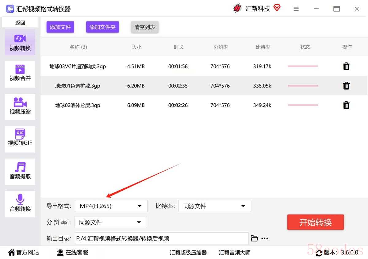 方法一:使用“汇帮视频格式转换器”把3gp文件转换成mp4进行播放