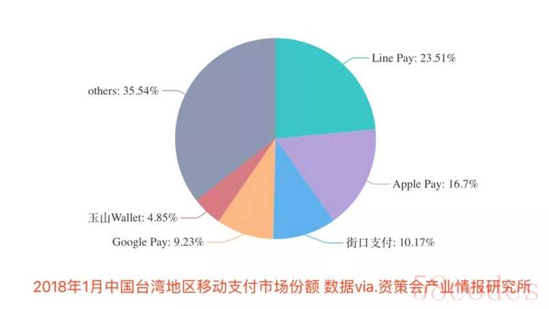 在一年前,这个数据份额分别为Line Pay(25.2%)、Apple Pay(17.9%)、街口支付(10.9%)、GooglePay(9.9%)与玉山Wallet(5.2%)。