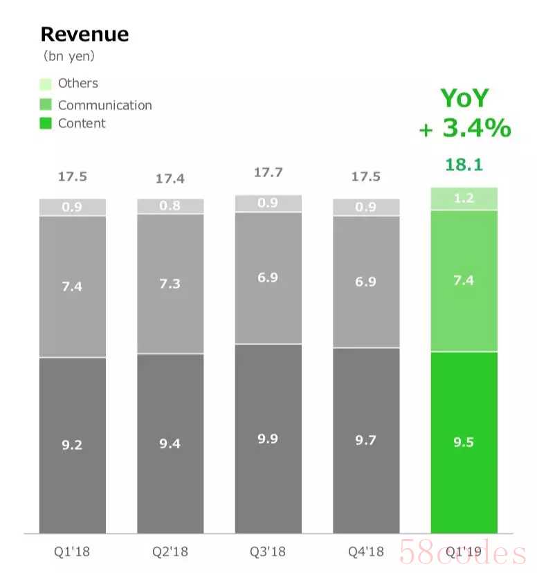 Line 2019年一季度财报显示,公司2019年一季度营收为553亿日元,同比增长13.5%。