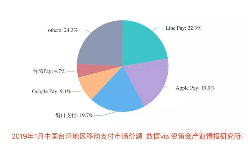 这份报告显示,台湾省2018年移动支付普及率已达50.3%,相较于2017年39.7%有显著提升。台湾省移动支付前五名依序为Line Pay(22.3%)、Apple Pay(19.9%)、街口支付(19.7%)、Google Pay(9.1%)与台湾Pay/台湾行动支付(4.7%)。