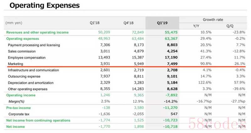 Line在2019年开年之后,大幅度增加了Line Pay的推广预算。一季度财报中显示,战略业务的总收入为73.75亿日元,这一数据同比增长了90.8%,环比增长了26.1%。