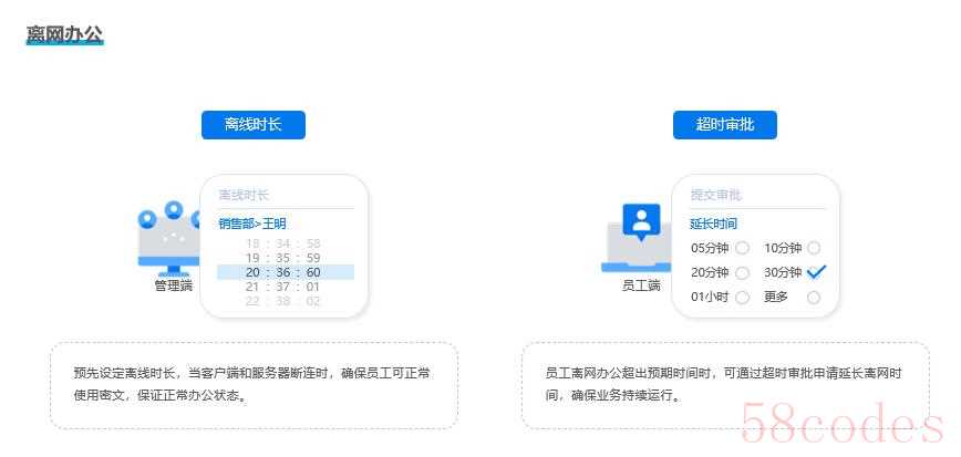 离网与审计双保障员工离网办公可预设离线时长,超期能申请补时审批,断网也能安全使用加密内容。同时记录加密内容全操作日志,检测异常行为立即告警,助力快速定位风险,阻断泄密。