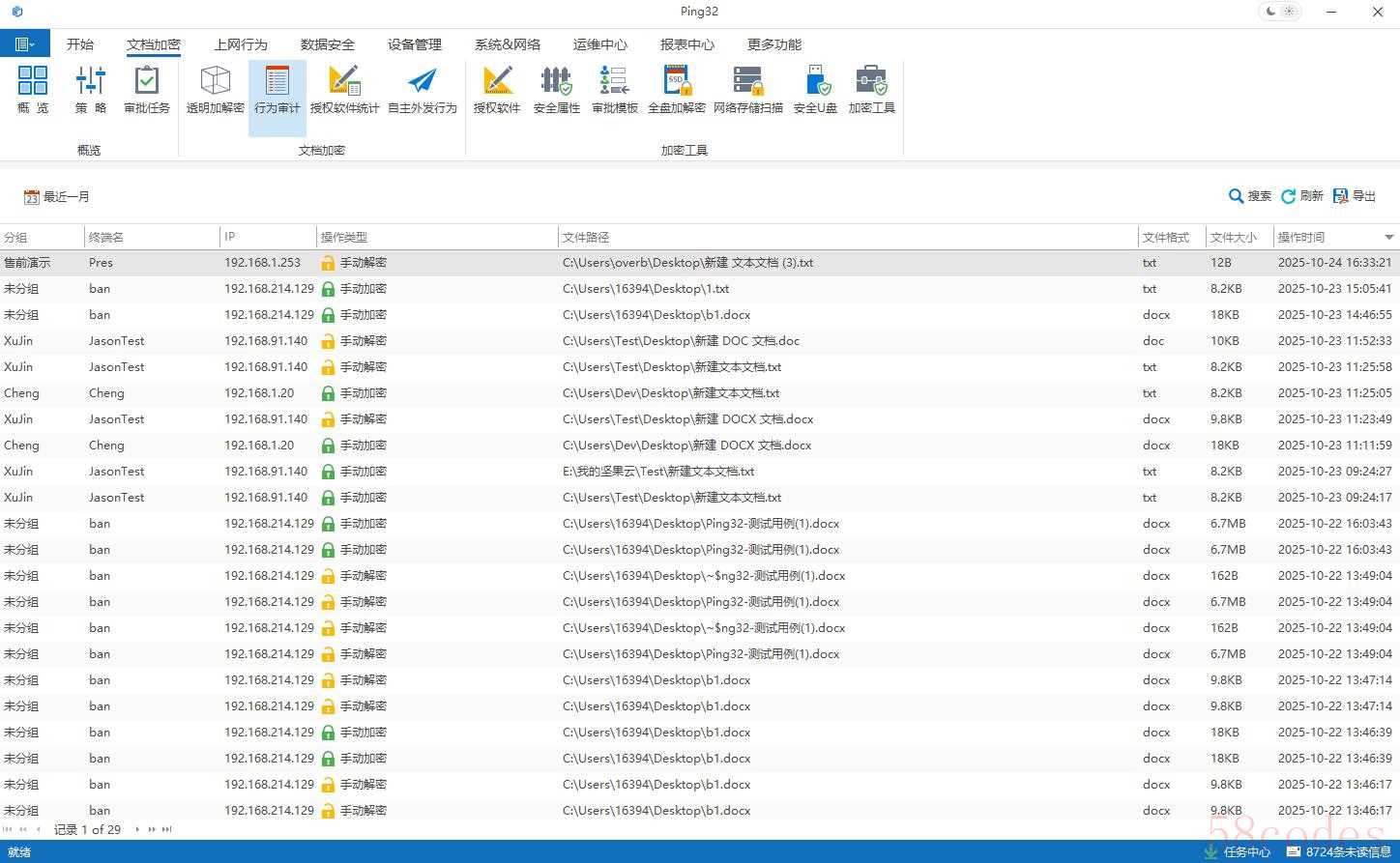 1. Ping32Ping32是一款以终端数据防泄漏为核心的一体化安全管理平台。全场景文件自动加密不管是 Word、Excel 等办公文档,还是 CAD 图纸、代码文件,创建或保存时都会自动用 AES-256 算法加密,用户编辑、打开完全无感知,不影响办公效率。未授权设备打开加密文件仅显乱码,从源头阻断核心数据外泄。分级权限精细管控按部门、岗位给加密内容划分访问权限,普通员工仅能查看授权文件,无法复制高密级内容;管理员可灵活调整权限。员工离职或调岗时,一键回收所有加密内容访问权,避免人员变动导致数据泄露。