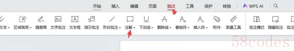 (2)点击“备注”工具栏。在顶部工具栏中找到并点击“备注”选项。