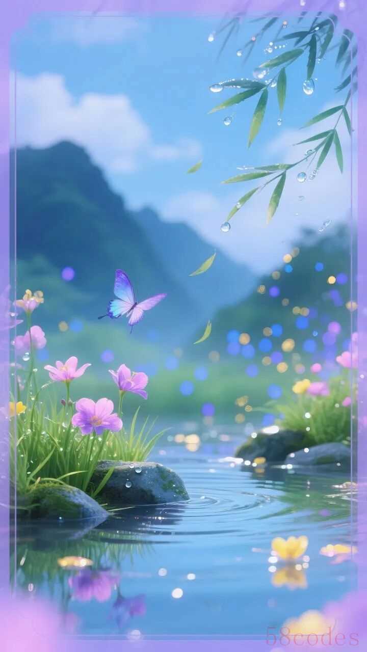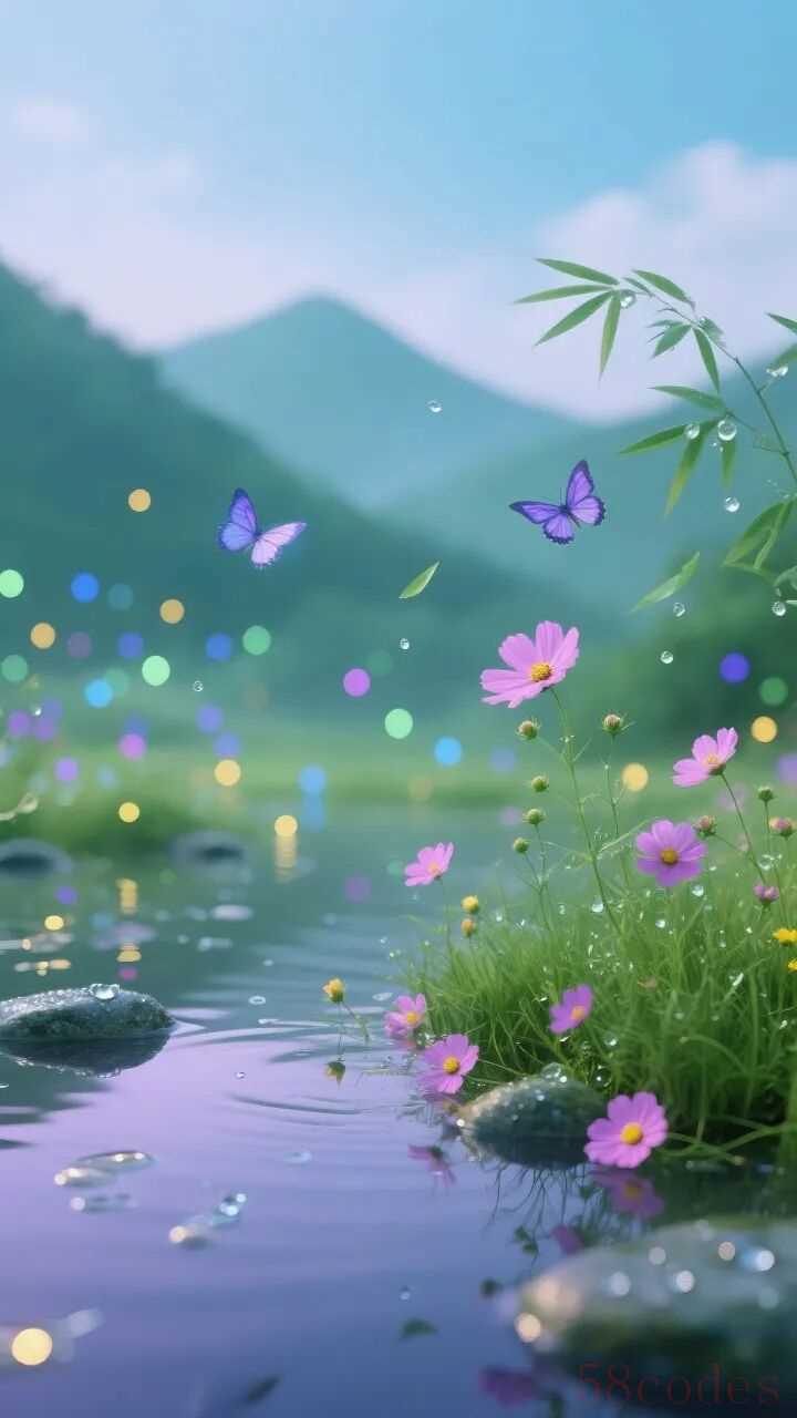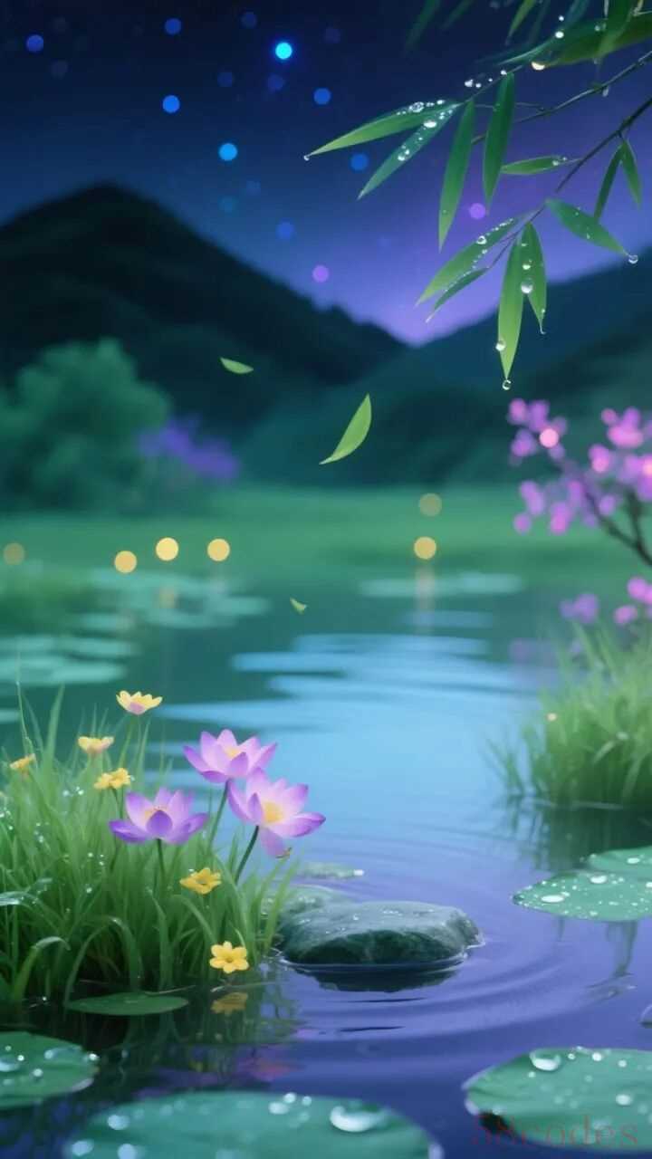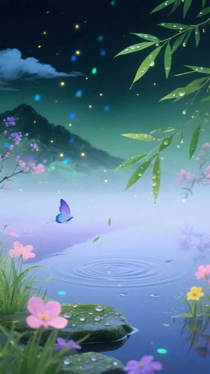 1. "极简风景:" 单一色块的天空、水面,点缀一两棵简化线条的树木或几朵简约花朵。