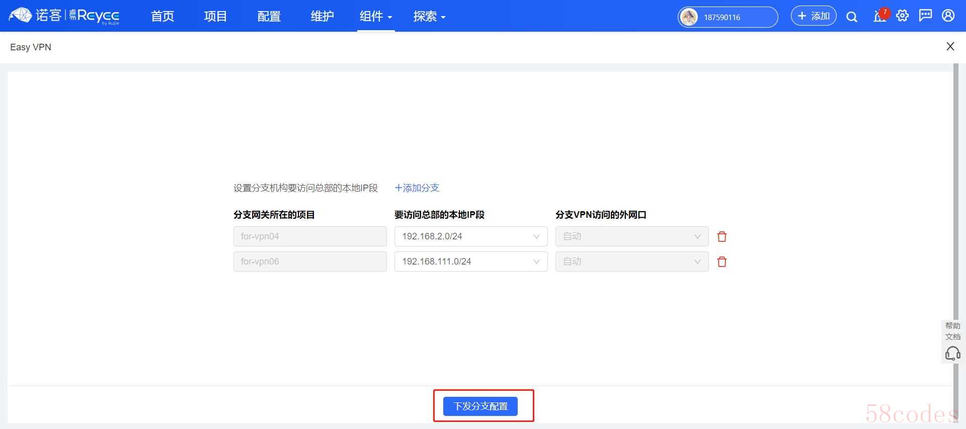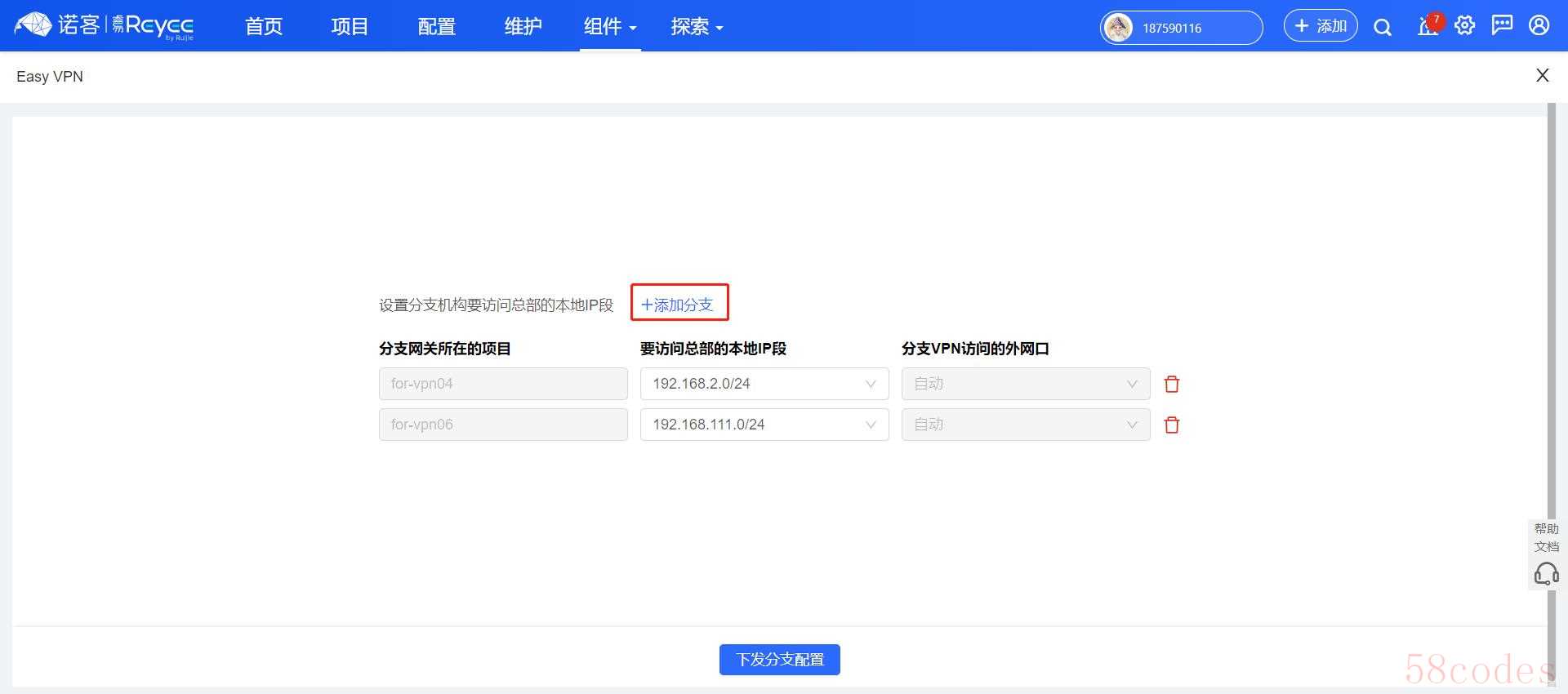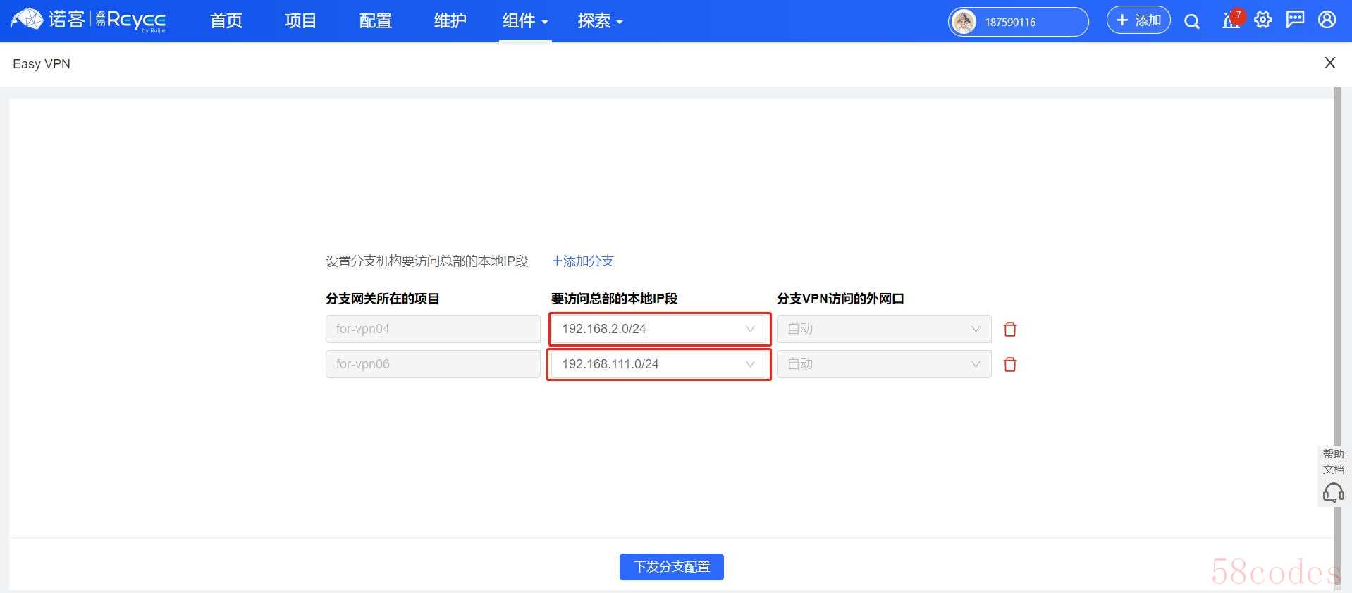 多WAN上网时,需要选择作为VPN服务器的外网口。诺客云能够自动识别端口IP的变化,并同步分支配置,保证动态IP情况下的VPN连接。 图2-6 选择分支访问的IP段